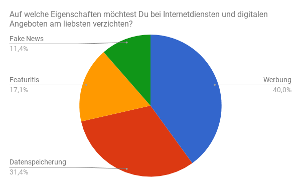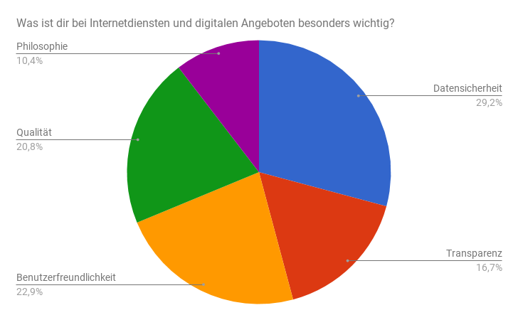 Die Freitext-Antworten auf unsere offene Frage “Was ist dir bei Internetdiensten und digitalen Angeboten besonders wichtig? ” ließen sich in fünf Kategorien zusammenfassen.
