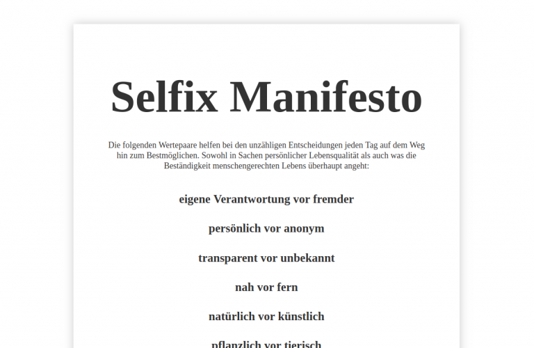 Das Selfix Manifesto haben wir entwickelt um unsere persönlichen und professionellen Entscheidungen daran messen zu können.